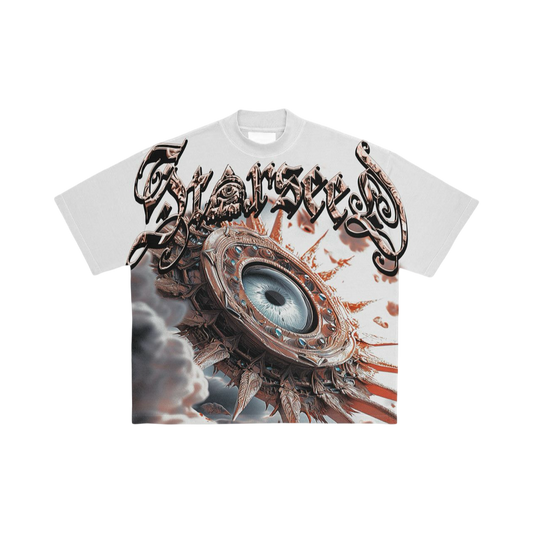 OVERSIZED DROP SHOULDER TEE WITH SCREEN PRINTED GRAPHIC AND DAMASK LABELS